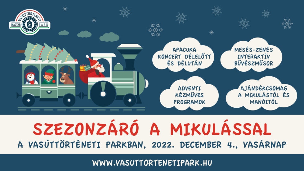 A Mikulás december 4-én, vasárnap látogat el a Vasúttörténeti Parkba, hogy ismét felejthetetlenné tegye a szezonzáró eseményt. A Vasúttörténeti Park ünnepi díszben, sok-sok színes programmal vár minden látogatót idén utoljára, hiszen legközelebb csak 2023 tavaszán nyitják meg újra kapuikat az érdeklődők előtt.
