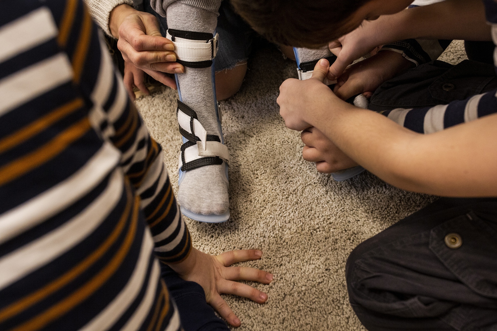 Balázs és Miki segítik fel Mátéra a lábsínt. / Fotó: Végh László