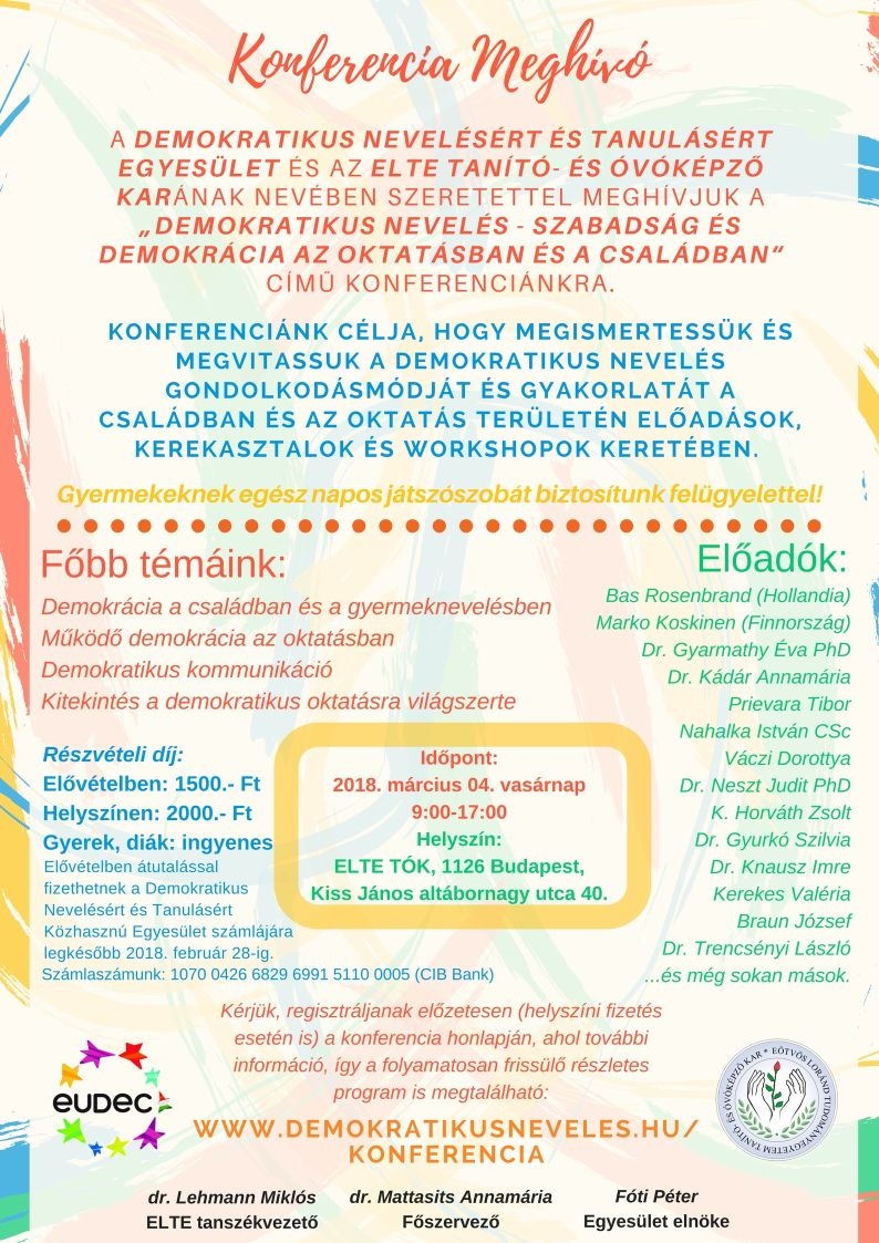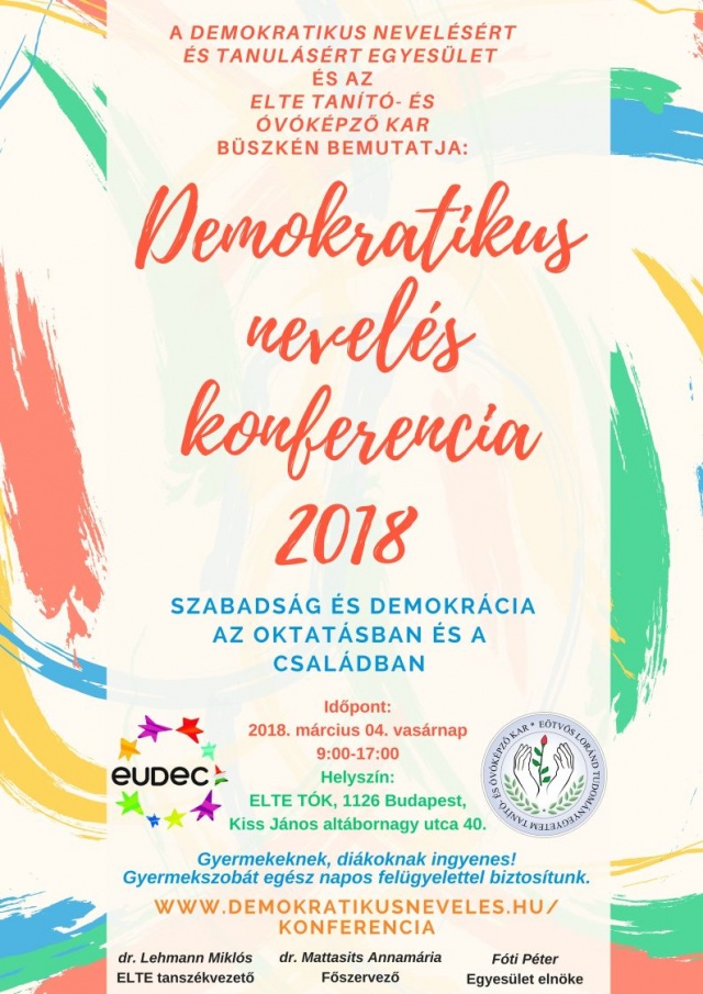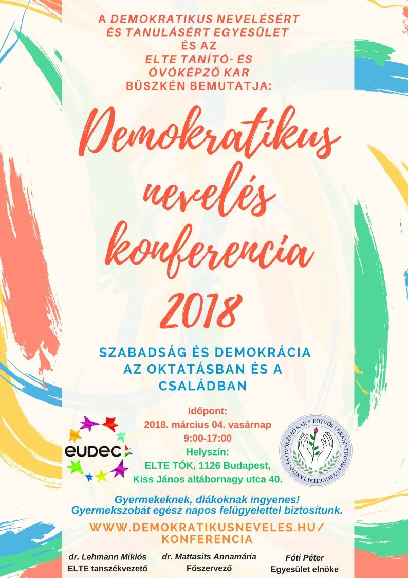 A Demokratikus Nevelés Konferencia célja, hogy megismertessék és megvitassák a demokratikus nevelés gondolkodásmódját és gyakorlatát a családban és az oktatás területén előadások, kerekasztalok és workshopok keretében.