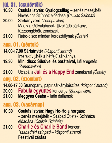 A fesztivál a "Híres Egyfejű" sárkány, Süsü köré szerveződik, aki sárkányhajón érkezik a rendezvényre. Kicsiket és nagyokat is vár a sárkányfelvonulás és sárkányeregetés, mely garantáltan vidám szórakozási lehetőséget kínál.
