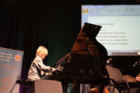 A vasárnapi program egész más műfajú volt. A gyereksereg Hajós Andrással együtt írt jazzdalt, nem vicc! Volt főpróba is, a végén pedig egy nagysikerű előadás a Modern Art Orchestra közreműködésével. A versszakokat a gyerekek kedvenc ételeiből rakták össze. Egy kisfiú gépelte a szöveget a színpadon levő laptopba, röfögtek és böfögtek, míg végül elkészült a Zabadal.