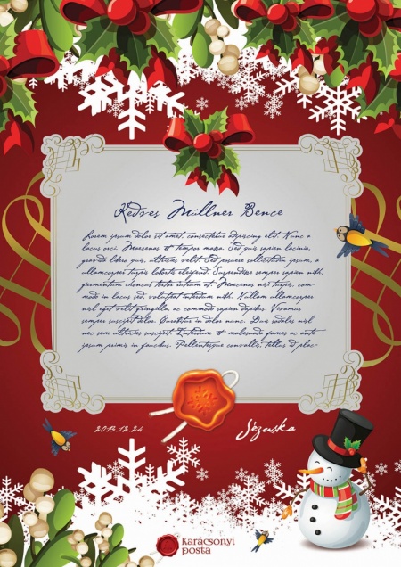 A Karácsonyiposta.hu jóvoltából ma már az sem lehetetlen, hogy a gyerekek kezükbe vehetik a Jézuska nekik írt levelét. Ez a küldemény tartalmaz egy kézi betűtípussal írott személyre szóló levelet, egy pecséttel ellátott, díszes "jósági" bizonyítványt, melyben a kis gyermek jócselekedeteit sorolják fel, továbbá karácsonyi kifestő lapot vízfestékkel, esetleg könyvet.