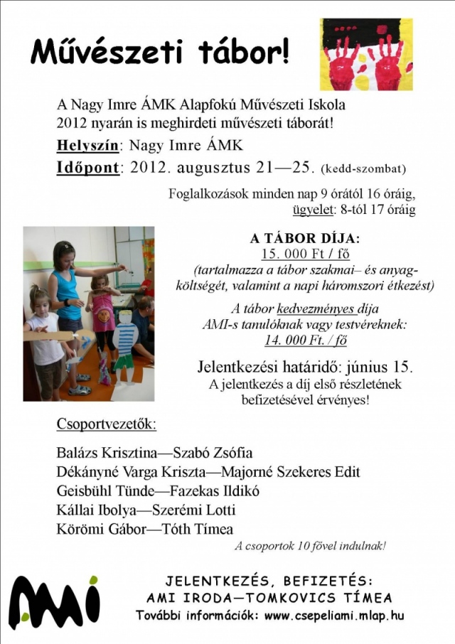 A Nagy Imre ÁMK Alapfokú Művészeti Iskolája augusztus végén tartja szokásos művészeti táborát.