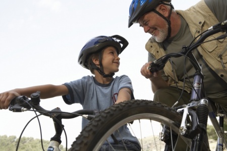 Amióta kitört a vakáció, minden reggel kilenckor – óramű pontossággal – megérkezik a járdára egy nagypapa az unokájával. A nagyapa kerékpározni tanítja a nyolcévesforma gyereket – és mivel a feladatot felettébb komolyan veszi, az a gyerek rövidesen két keréken fog száguldani! Színes krétával pályát rajzolt a járdára: nyilakkal bejelölte az útirányt, egy kört rajzolt bólyák helyet, és azt is megjelölte, honnan kell megkerülni azokat. Ma reggel egyszerre érkeztünk – én a kutyával. "Melegíts be, csak az első kettőt kerüld" – szólt az utasítás, és a bukósisakos kisfiú láthatóan örömmel tett eleget az utasításnak. Azt már később láttam, hogy kis zászlócskát adott hol az egyik, hol a másik kezébe, hogy rávezesse az egyensúlyozás nehéz tudományára – lenyűgözve álltam az ablakban.