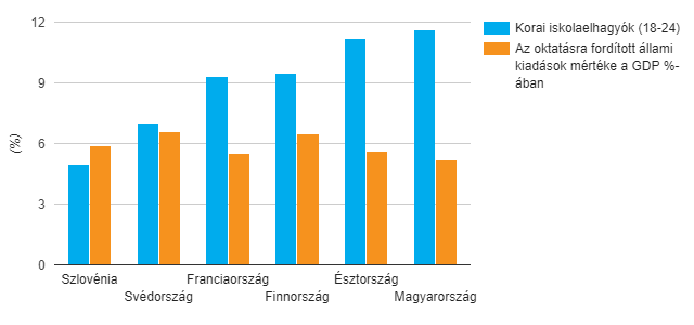 A korai iskolaelhagyók számára sok tényező hat a gazdasági helyzettől az oktatási rendszer struktúrájáig, de biztosan nem elhanyagolható tényező az oktatásra fordított finanszírozás mértéke sem. Érdekes összevetni ezt a két arányszámot Magyrországon, és olyan országokban, akik már elérték, vagy megközelítették a 10%-os célt.