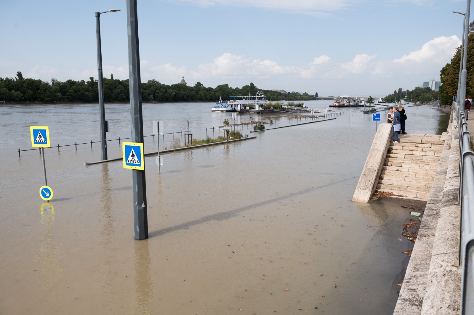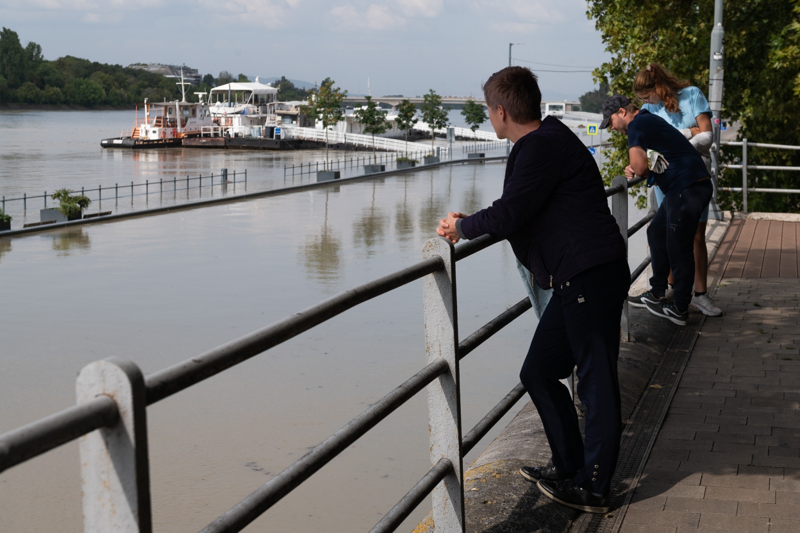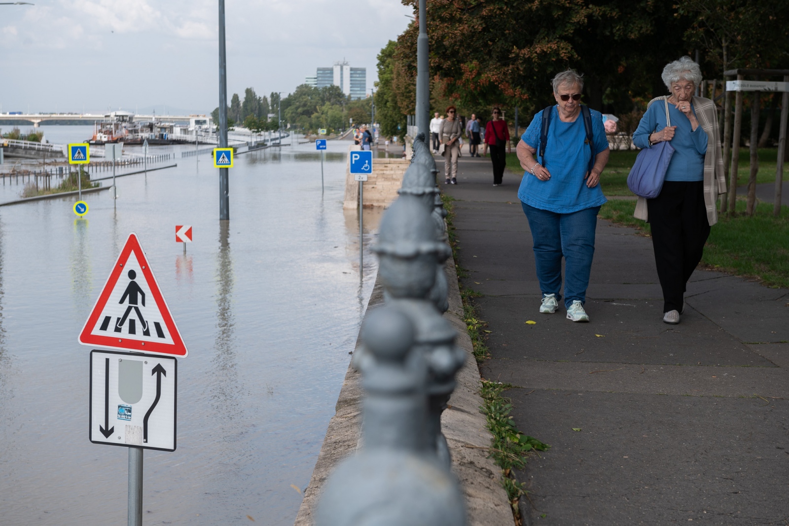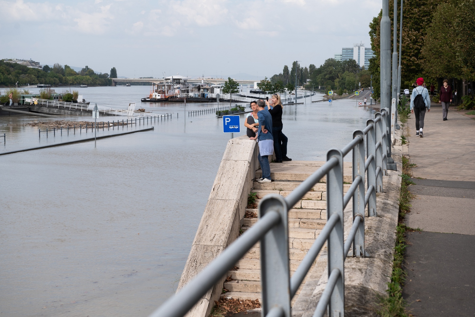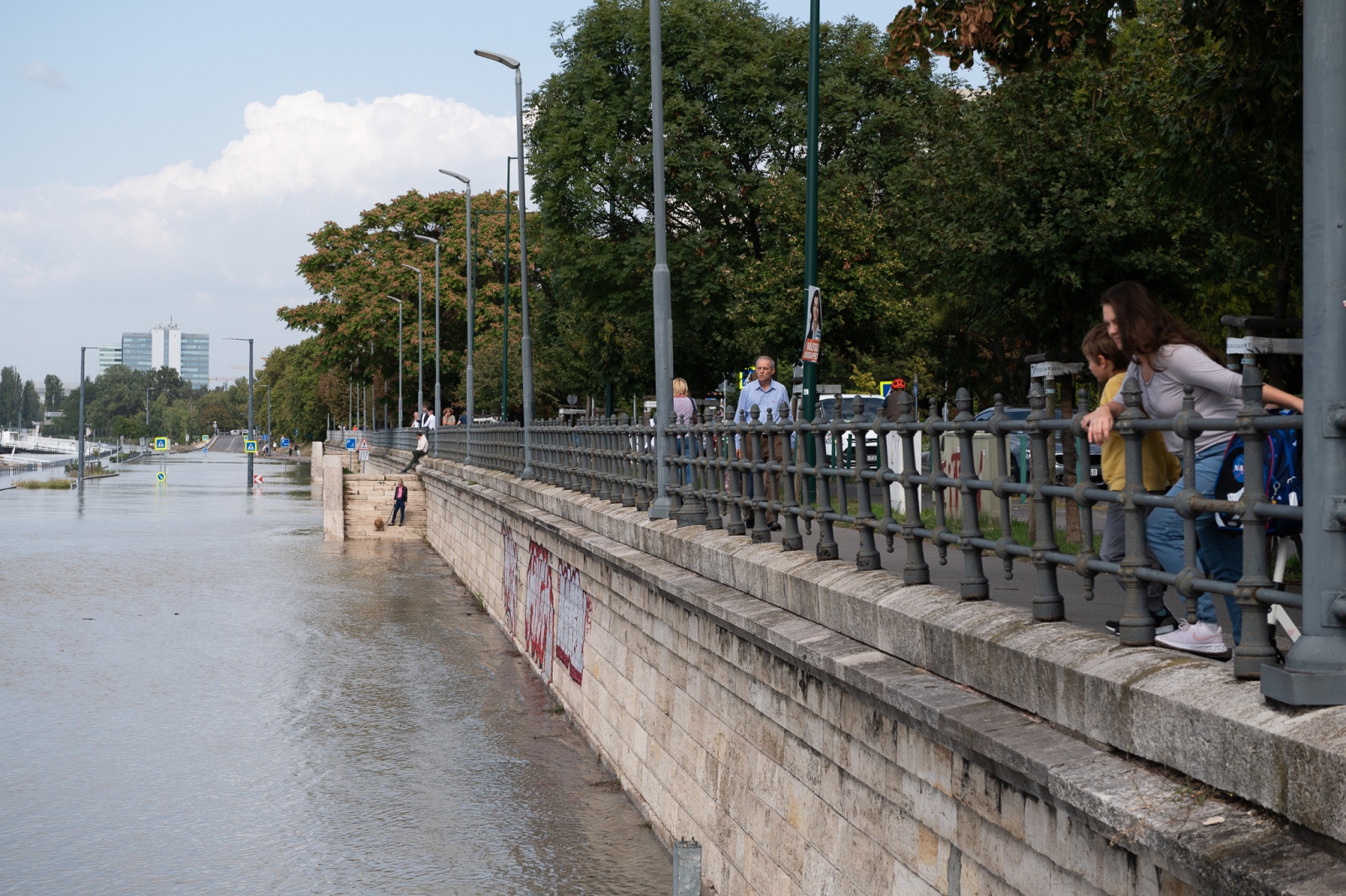 Fotókon, ahogy kíváncsian figyelik a kiáradt Dunát a fővárosiak