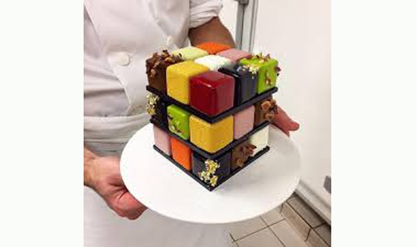 A világ kedvenc logikai játéka Cédric Grolet-t, francia cukrászmestert is megihlette, és ezzel Rubik Ernő zseniális találmánya az ínyenceket is végleg meghódította magának. A francia Cédric Grolet – aki a Relais Desserts szövetségnél 2016-ban az év legjobb cukrásza lett –, látványos Rubik-kocka tortákat készít. Az ő Rubik-kockáját ugyan nem lehetne kirakni, tehát logikai rejtvényként nem működik, de annál látványosabb, fotogénebb és rendkívül ízletes. Ha jól megfigyeljük, akkor látható, hogy a nagy torta több kisebb finom édességkockából tevődik össze. A francia cukrászmester arra külön figyelt, hogy élethűen ábrázolja Rubik találmányát, ezért elforgathatóvá tette az édességet.