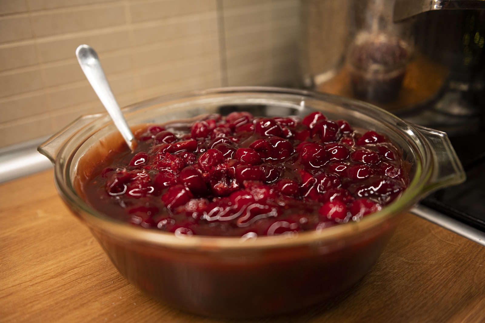 2. Miután a puding kihűlt, belekeverjük a kimagozott meggyet. Ha mirelit meggyet használunk, akkor a mirelit gyümölcs prímán lehűti a krémünket.