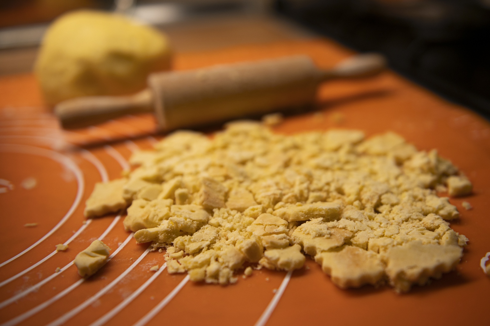 A kekszet egy pillanat alatt meg tudjuk törni a nyújtófával.