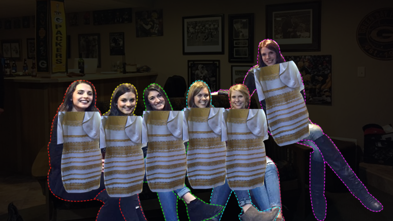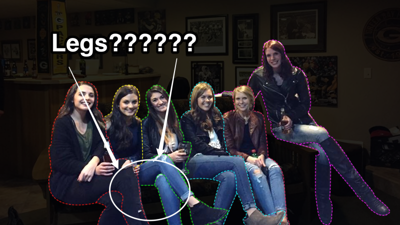 A középen ülő lány tűnik úgy, mintha teljesen lábatlan lenne. Óriási kommentháború indult el, amely a Redditről indult el. Mindenki találgatta, vajon hová tűnt a lány lába. Legtöbben arra tippeltek, hogy a hiányzó pár lába többi mögött bújt meg, de ez csak féligazság. Az internetezők mindent megpróbáltak figyelembe venni, árnyékokat, előbukkanó cipőket néztek. Valójában a megoldás végig az orrunk előtt van.