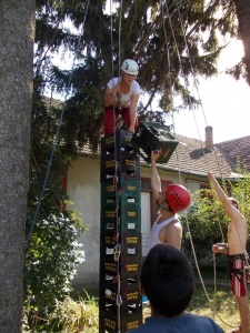 Jól jöttek a szervezésben résztvevők ismeretségei: a tanoda kertjében került sor a fő-attrakciónak számító bátorságpróbára, amit ipari alpinisták vezettek le profi felszereléssel. A gyerekeknek, és persze a szervezőknek is két fához kibiztosítva kellett sörös rekeszeket saját maguk alá pakolni és így mászni fel a magasba, egészen addig, amíg meg nem borult a teljes építmény.