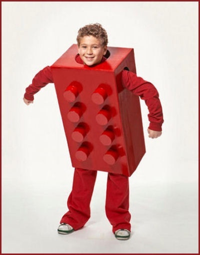 Második jelmezélményem megrázó volt, mert a szüleim szereztek valahonnan egy lovagjelmezt (keménypapír+ fólia), és nekem azt kellett felöltenem. Pedig már akkor is lány voltam. Sosem fogom elfeledni, mennyire irigyeltem azt a gyereket, akire szimplán ráadtak egy tévésdobozt, amelybe két rést vágtak: az egyiken a pénzt kellett bedobni, a másikon a Kismackó csoki csúszott ki az eredményes tranzakció jeléül. Ezzel a megoldással ma is tarolni lehet, de ha valaki cizelláltabb megjelenésre vágyik, akkor némi doboztunninggal megvan a legófigura is.