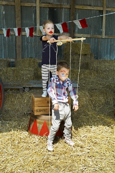 S ha az imént páros jelmezt emlegettünk, itt van egy minden igényt kielégítő ebből a fajtából is: olcsó, gyors, szellemes és nagy lehetőségeket rejtő. Míg az előbbiekhez nem szükségeltetett feltétlenül zenei effektus, itt azért ne hagyjuk ki, mert a vándorcirkuszok hangulatát pusztán a zsinórok mozgatásával nem lehet visszaidézni. Fontos az is, hogy később, az iskolapszichológusnál ne felejtsünk el szót ejteni arról, hogy melyik gyerekünk volt anno a játékos, és melyik a báb...
