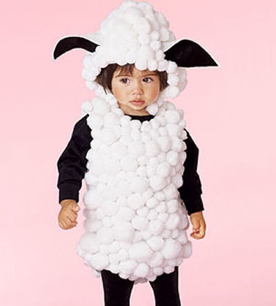 Alsóban mindig volt egy hópihe vagy hógolyó a kínálatban – a havas hatást vatta felhasználásával lehetett legegyszerűbben elérni. Azóta a vattának se híre, se hamva, léteznek viszont vattapamacsok, s ha szerencsénk van, hófehér is akad, és némi türelemmel elkészíthetjük belőle az alábbi jelmezt. Ha még ennél is nagyobb szerencsénk van, a saját gyerekünk nem ilyen rémült arcot fog vágni benne, és egy darabig csendben is marad, hiszen, mint tudjuk, a bárányok hallgatnak...
