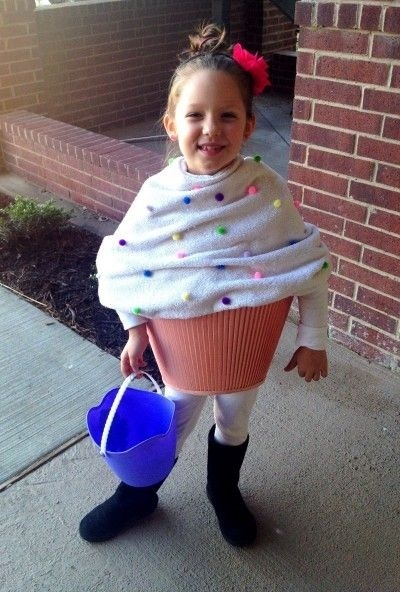 A vattapamacsoktól csak egy ugrásra vannak a pomponok: ezeket lehet felhasználni a muffin (vagy cupcake) jelmezhez. Továbbá egy, az eredeti helyzetéhez képest fordítva viselt lámpaernyőt. A fotón szereplő megoldásnál sokkal fantáziadúsabb fejdísz is készíthető – gondoljunk csak arra, hogy magát a süteményt is hány féle módon lehet feldíszíteni –, a vödröt viszont mi sem értjük.