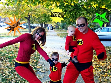 Hősök és szuperhősök kategóriában szntén három indulónk van. A klasszikus lovag és sárkány párpsítás elbűvölő, főleg, ha a sárkány még csak mászni tud, de a fényes palástos srácok is megállják a helyüket. Család legyen a talpán viszont, aki bevállalja az Hihetetlen család jelmez elkészítését és prezentálását!