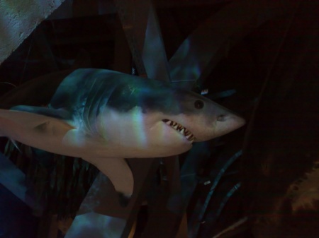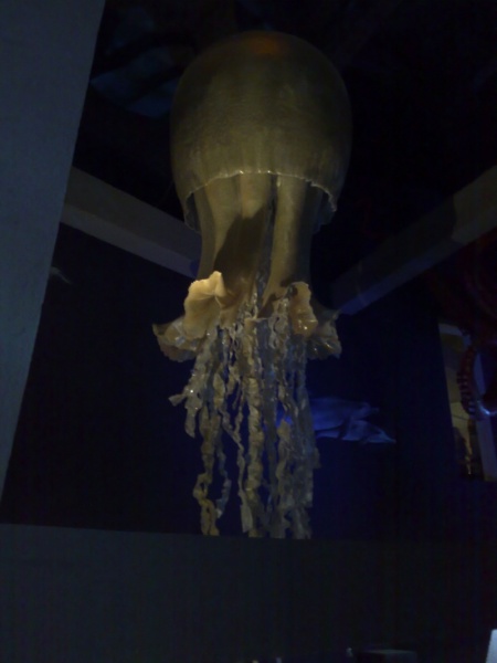 Az állatbemutató után sorra jártuk a termeket. Rögtön az első teremben, az óriások csarnokában nagy meglepetés ért minket, ugyanis egy bálnával találkoztunk teljes nagyságában. Ezzel a budapesti állatkert létrehozóinak száz éves álma valósult meg. Ezen felül tintahal és cápa, delfin is látható életnagyságban (persze nem élő állatok voltak, azért messzebb kell utazni, mondjuk Spanyolországba, vagy az USA-ba).