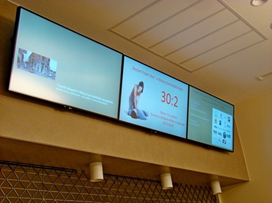 Az Elios jóvoltából a betegfelvételi részlegen új beteginformációs rendszer létesült: az összesen 9, számítógéppel vezérelhető képernyőn beteginformációk, a szülőknek szóló tudnivalók, gyerekfilmek, a medikusok képzését segítő anyagok futhatnak. Akár egyszerre is... A monitorok mindenhonnan jól láthatók, de a biztonság kedvéért hangszórók is segítik a betegirányítást.