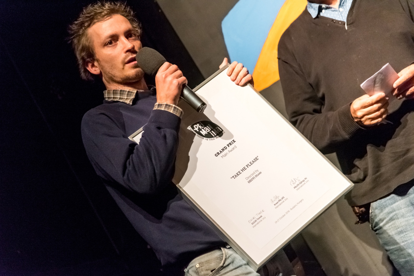 Az idei fesztivál nemzetközi szakmai zsűrije – Ducki Tomek lengyel-magyar animációs rendező, Kreet Paljas, a budapesti Anilogue programigazgatója és Pálos György filmrendező, producer, tanár a Primanima Nagydíját Hegyi Olivér Take Me Please című, a Moholy-Nagy Művészeti Egyetem animáció mesterszakán készült diplomafilmjének adta, mely egy párkapcsolat széthullásának utórezgéseit mutatja be egyszerre humoros és maróan fájó, átélhető módon, a rendező saját, eltorzított hangjának tolmácsolásában.