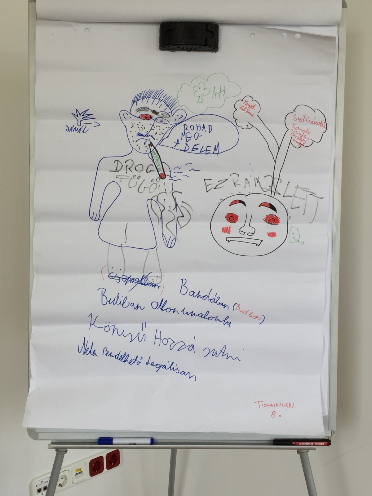 Megdöbbentő, de nem az élvezetért. A mai designer drogok többsége nem ad ilyen élményt. Az egyik ötödikes fiú így írta le a hatását: „szédültem, fájt a fejem, elzsibbadt a lábam, az egész testem…” A drogszakértők is kihangsúlyozzák, hogy míg korábban a kábítószer használat célja valamilyen eufórikus állapot elérése volt, addig ma már elsősorban a cél az, hogy az illető kimeneküljön a saját életéből. Arra a kérdésre, hogy ha ez ennyire nem jó érzés, akkor mégis miért drogoznak, szinte mindenhol a válasz az volt, hogy az embert érő gondok (pl. gyász, magány) okozta stressz kezelésére nincsenek megfelelő eszközök,még a felnőtt társadalomban sem. Ahogy a tanulók egy része fogalmazott: „a drog egy olyan szer, amit akkor használnak, amikor valami szomorú történik vele. Például elhagyják. Szomorúak és nem tudják feldolgozni az érzéseiket és nem tudják megosztani.”