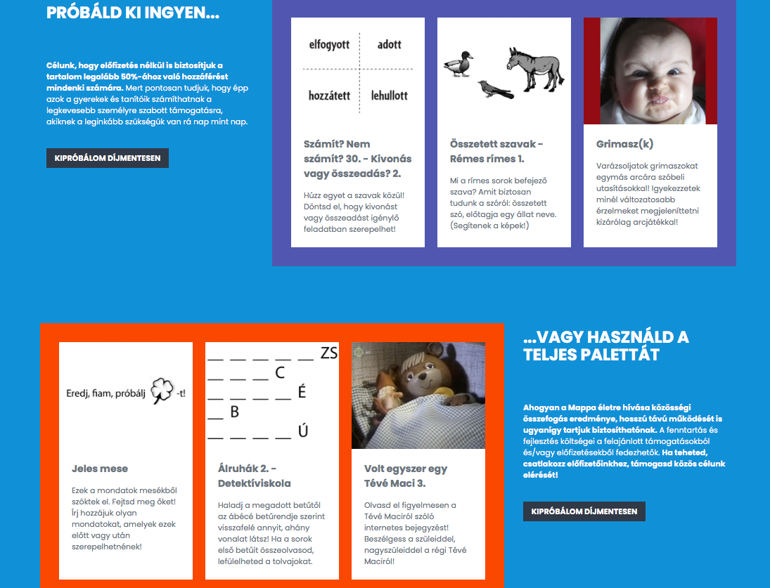 A Mappa készítői azonban ebben az esetben is azt tartják a legfontosabbnak hogy a választás lehetőségét felkínálják a tanítónak, a szülőnek. Ha úgy gondolják, nyomtassák ki a gyereknek a feladatokat, de csinálhassa meg online is. Tehát ezen dolgoznak, és abban reménykednek, hogy hamarosan ezt is hozzá tudják építeni a feladatbankhoz.