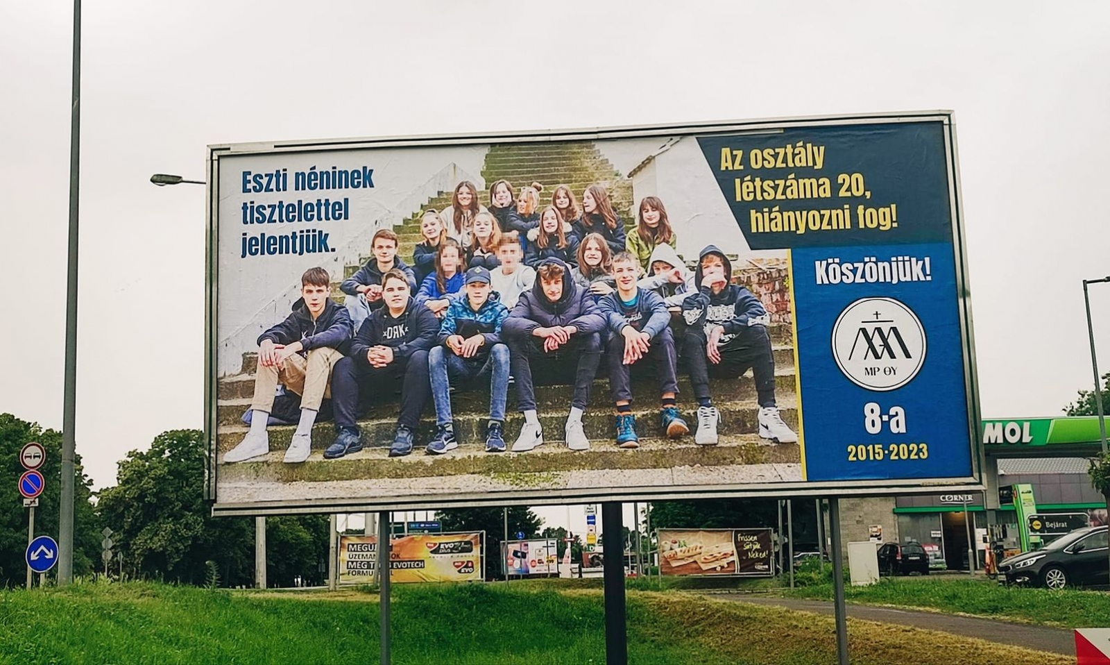 Több mint megható, ahogy mosonmagyaróvári Piarista Gimnázium, Általános Iskola és Óvoda 8/a osztálya elköszönt osztályfőnökétől - kiírjuk a nevét, mert nagyon megérdemeli -, Pozsgai Esztertől! A gyerekek ugyanis egy óriásplakáton búcsúztak el tőle.