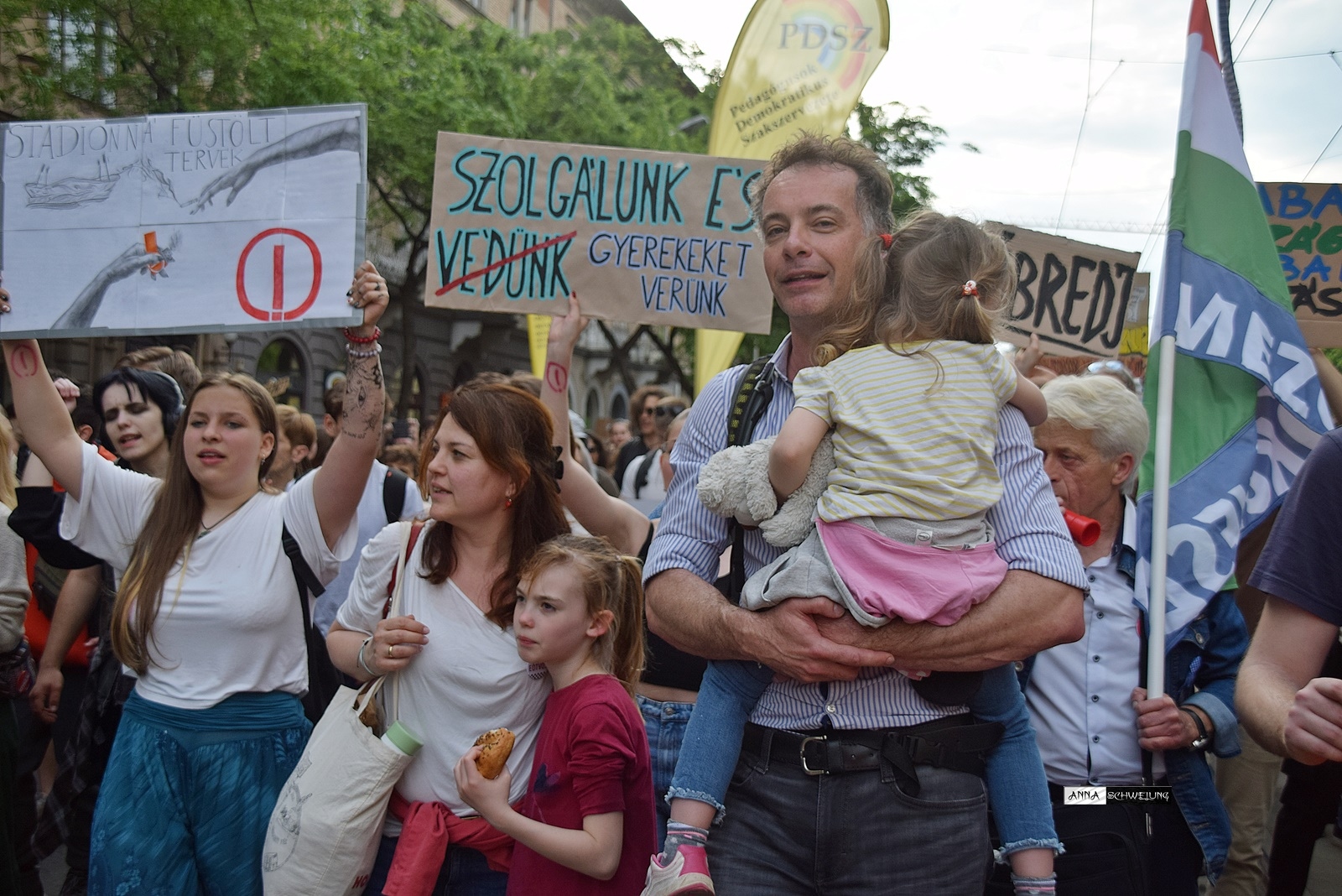 A „Gyerekeket bántasz! – 7IGEN-nel a gyermekbántalmazó rendszer ellen” címmel meghirdetett demonstráción több ezren gyűltek össze.