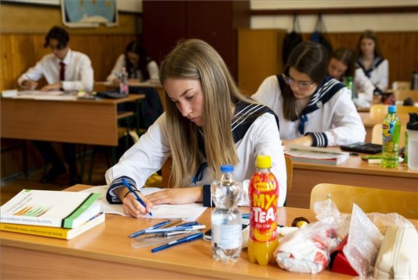Fotók a cikkben: Győr, 2024. május 7. Diákok a matematika írásbeli érettségi vizsgán a győri Kazinczy Ferenc Gimnázium és Kollégiumban. MTI/Krizsán Csaba
