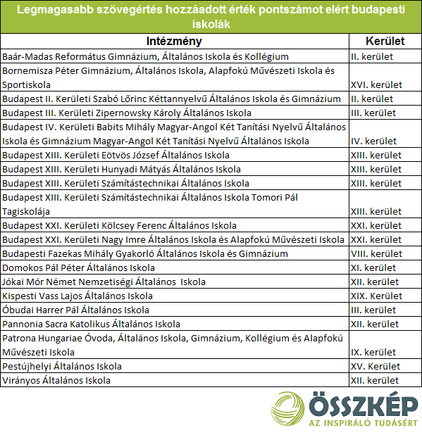 Iskolák a határon – A legjobban teljesítő iskolák listái: a budapesti élboly