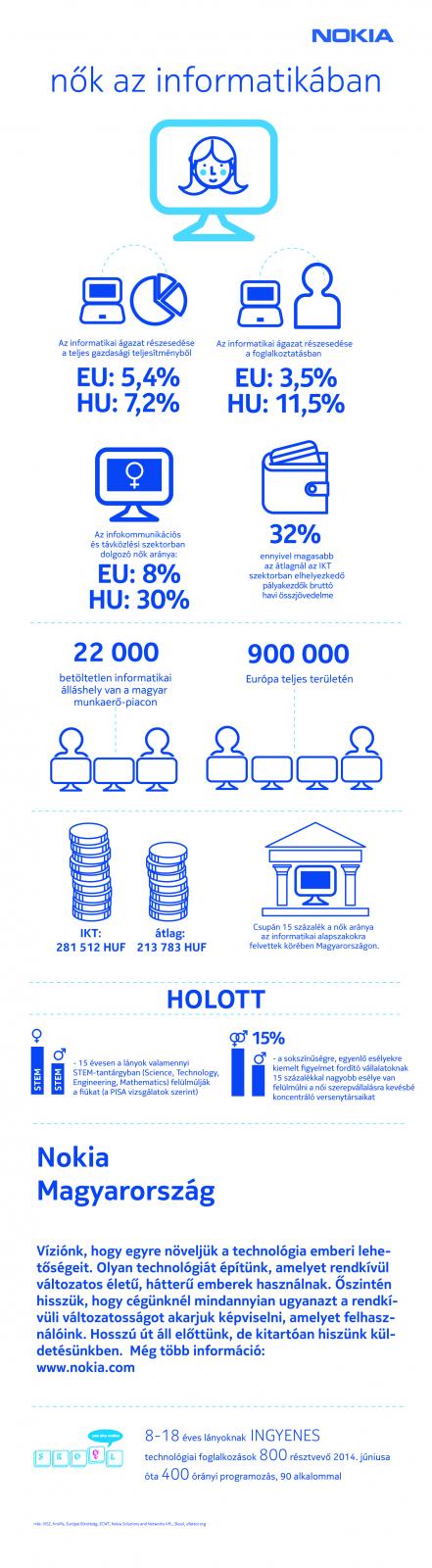 Harmadával többet keres havonta az átlagnál az a pályakezdő fiatal, aki az infokommunikációs és távközlési szektorban helyezkedik el. Mégis 22 ezer betöltetlen informatikai álláshely van a magyar munkaerő-piacon. A szektorban dolgozó nők aránya csupán 8 százalék. A lányok 15 évesen még valamennyi tudományos-technológiai tantárgyban felülmúlják a fiúkat, de a fizetési egyenlőtlenségek, a munka és magánélet összeegyeztethetetlensége, a barátságtalan, elférfiasodott környezet eltántorítja őket a pályától. A Skool és a Nokia közös célja, hogy a fiatal lányok játékos foglalkozásokon kapjanak kedvet az informatikához, és a speciális oktatási program segítségével később ebben az ágazatban helyezkedhessenek el.