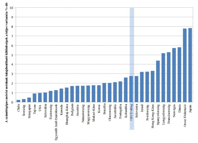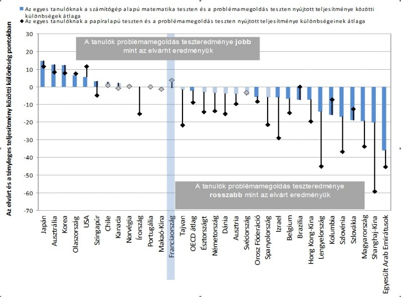 Japán, az Orosz Föderáció, Norvégia, Franciaország és Lengyelország esetében 5% felett, Magyarországon, Ausztriában, Németországban 2 % alatt van a kizárólag a számítógépes tesztelési mód rovására írható különbség.
