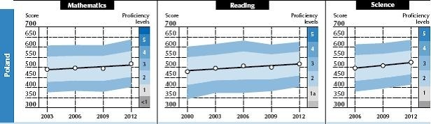 A matematika 2003-ban volt utoljára kiemelt mérési terület. Az eltelt 9 éves időszakban az európai országok közül Lengyelország javított a legtöbbet, 26 ponttal növelte kilenc év alatt az eredményét, és mára az OECD országok átlaga felett teljesít. A legnagyobb növekedés 2009 és 2012 között következett be, ami egyértelműen bizonyítja, hogy a lengyel alapfokú oktatás 1997-ben végrehajtott szerkezeti reformja révén az alapfokú oktatást sikerült tartós növekedési pályára állítani. A PISA elemzők a trendadatok alapján gyorsuló növekedést prognosztizálnak.