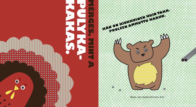 Ez az a könyv, ami az alkalmazott formától függően lehetett volna valami sokkal primérebb is, mondjuk bejegyzés a Facebookon arról, milyen rokon/eltérő gondolkodásmódról árulkodnak a hasonló tartalmú szólások és közmondások más és más nyelven. Egy-két napig nagyot ment volna, sok-sok lájkkal és megosztással (mind a 45 szólást persze csak néhányan olvasták volna végig), míg aztán elfelejtettük volna gyorsan. Vagy lehetett volna valamiféle térképes megoldás, hasonló élettartammal. Szerencsére könyv lett az alapanyagból, ami lassan jár, tovább ér. Eile mit Weile, ahogy a német mondaná – mondjuk ez éppen nincs a könyvben, de ez természetesen nem a könyv, amiben minden szólás és közmondás benne van valamilyen nyelven, hanem az, amiben csak 45 van, de még sincs hiányérzetünk. Néhány kedvenc: román változatban „aki két nyúl után szalad, egyet sem fog”, amit mi úgy mondunk „két szék között a földre ül”; ami malgas nyelven nagyszabású kép, „az éhes krokodil nem válogat, hogy mit vesz a szájába”, magyarul egyszerűen a „a szükség nagy úr”; Japánban „a jó szerencse fekve vár”, nálunk „a türelem, rózsát terem”; az észteknél „a kíváncsiság öli meg a macskát, nálunk „a kíváncsi hamar megöregszik”; vajon ki a mérgesebb, aki „mérges, mint a fenékbe lőtt medve” (finn), vagy aki „mérges, mint a pulykakas”; és mennyivel megnyugtatóbban hangzik, amikor a spanyolok azt mondják „ki van a ruha teregetve”, mint amikor mi azt mondjuk, „a falnak is füle van”. Nem folytatom. Ami még hozzá jön ehhez, hogy megvan 45 szólásunk 25 különféle nyelven eredetiben is, ha a nagy részüket egy kicsit sem értjük, ez akkor is jó érzés.