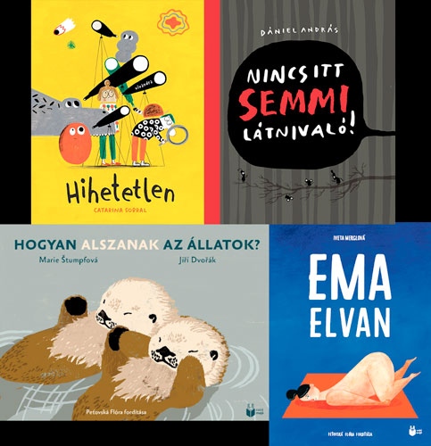 Ezúttal a közelmúltban megjelent szép könyvekről írok. Szó lesz Catarina Sobral gondolkodtató, ismeretterjesztő könyvéről, a Hihetetlenről és Iveta Merglová (szinte) szöveg nélküli könyvéről (Ema elvan), írok Dániel András legutóbbi nagy vállalkozásáról (Nincs itt semmi látnivaló!), majd végül még egy ismetterjesztő könyvről (Jiří Dvořák: Hogyan alszanak az állatok?) Ami közös ezekben a könyvekben, hogy alkotóikat többnyire nem tántorítják vissza az elvárások, simán kezdenek hát-tal mondatot.