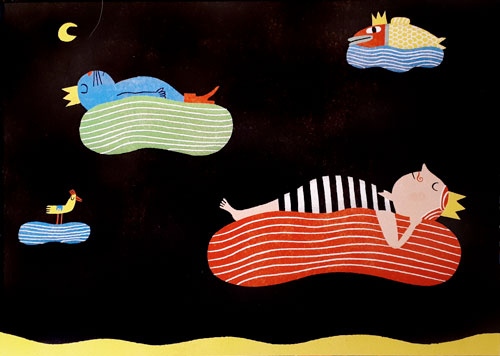 Ha egy képeskönyvet a legjobbak közé sorolunk, adja magát, hogy összehasonlítsuk a műfaj Szent Grál-jával, az Ahol a vadak várnak-kal, ezt amúgy itt a formátum, a kidolgozottság, a szöveg-kép arány amúgy is indokolná. A kép-szöveg viszony nagyon hasonló, itt is hol értelmezik, hol kiegészítik egymást, és bár egyértelmű a képes tartalom túlsúlya, a szöveg nem játszik alárendelt szerepet. A képek itt is megállnák a helyüket autonóm műalkotásokként is. A képek integritását segít megőrizni, hogy a sehol sem kell a kompozíciókban helyet hagyni a szövegnek. Ahogy Maurice Sendaknál, úgy itt is nagy részt vállal a történetmesélésben a környezet és a környezet változása, ahogy külön történetet mond el a király arckifejezésének változása (illetve nem változása). Ami óriási különbség, hogy a főszereplők – szemben Maxszal – szinte teljesen passzívak, nemcsak a szöveg szerint, hanem (ha lehet ilyet mondani) vizuálisan is csak elszenvedik a történéseket. Ennek a passzivitásnak az ábrázolása a legmesteribb húzása az illusztrációnak.