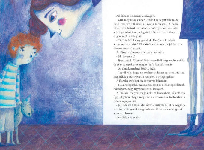A kék madár az alaptörténetek közé tartozik. Könyvesboltos tapasztalataink szerint körülbelül úgy él az emberek fejében, mint a Pán Péter, az Oz, a Csudálatos Mary vagy a Micimackó és még sok más klasszikus: ezeket, ha is nem tömegek, de folyamatosan keresik. A felsoroltakkal szemben egészen az utóbbi időkig nem tudtunk mit a vevő kezébe adni. Ebbe talán nem gondoltak bele, de valószínű, hogy a szülők egy része nem is könyvből, hanem a még a 70-es években készült filmből (George Cukor egyik utolsó filmje, amerikai-szovjet koprodukció, Liz Taylor, Ava Gardner, Jane Fonda… magáról a filmről is hosszan lehetne írni) vagy a számos színpadi feldolgozás egyikéből ismerik a történetet. Kicsit megtévesztő, ami a könyv borítóján is olvasható, a „Maurice Maeterlinck meséje alapján” kitétel, mert ha lenne ilyen mese, akkor nem biztos, hogy szükség lenne adaptációra, legfeljebb időnként új fordításra. A helyes kifejezés az eredeti műre „mesejáték” lenne, a dráma pedig nem igazán felolvasásbarát forma, így nem csoda, hogy ritkán adják ki. Maradnak a feldolgozások, amelyek valamiért gyorsabban avulnak, mint az eredetik, ezek közül a legújabb Tarbay Ede 80-as évekbeli, mára nagyjából elfelejtett átirata volt. A Cerkabella jól érzékelte, ha készítenek egy tényleg jó könyvet ebből a történetből, annak lesz vevője. Gimesi Dóra pedig klasszikusokhoz mérhető adaptációt írt, még ha biztos akadnak is benne romlandó részek. Lássuk, hogyan sikerült ez neki.