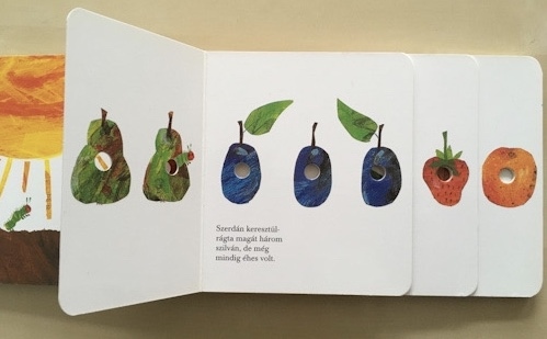 Eric Carle: A telhetetlen hernyócska. Magyar fordítás: Demény Eszter. Pagony, 2006, 2019. 24 oldal, lapozó.