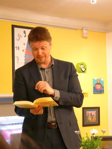 Timo Parvela 2012-ben a Két Egérben. Az Ellából olvas fel finnül.