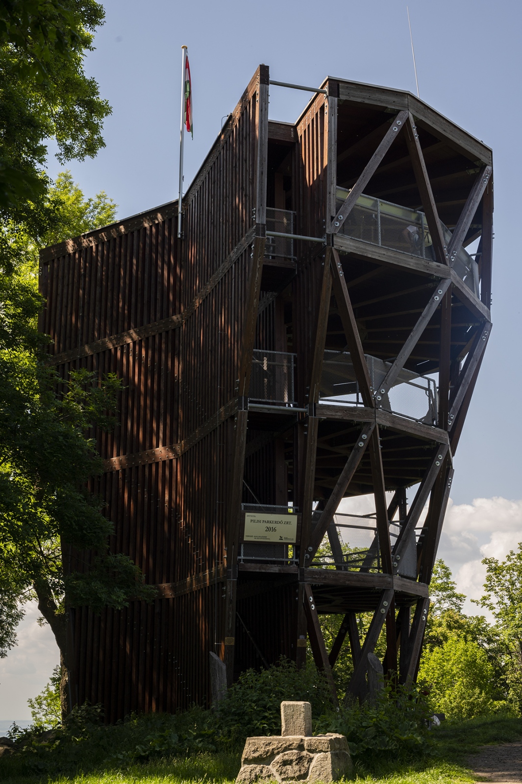 A modern kilátótornya fából és acélból készült, 12 méter magas. A kilátó három szintes, és a legfelső teraszról teljes körpanoráma tárul elénk. Formája a hegység geometrikus vonalait idézi.