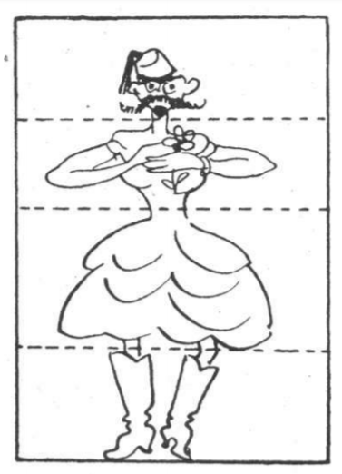 Biztos mindenki emlékszik gyerekkorából, amikor egy papírlapot négy részre hajtogatunk és az első résztvevő a lap tetejére egy fejet rajzol, aztán behajtja úgy, hogy a többiek ne lássák, hogy mit rajzolt, de a nyak egy kis részen látszik, hogy a második tudjon rajzolni hozzá egy felső törzset. Ő is behajtja a papírt, de a derékból látszik annyi, hogy a következő tudjon hozzá egy alsó törzset rajzolni, az utolsó pedig megrajzolja a lábakat. Ha utána a papírt kinyitjuk, mókás szörnyalakok fognak előbukkanni, persze attól függően, mennyire szabadult el a fantáziánk. Hiszen fejnek lehet emberi, állati, de akár egyéb mesebeli fejet is rajzolni, sőt akár virágot is, vagy ami eszünkbe jut. Az így kapott alakot utána ki lehet színezni és kivágni, majd pálcikára ragasztva bábfigurát csinálhatunk belőle. Ha több ilyen alakot készítünk és kitaláljuk az élettörténetüket, utána szórakoztató bábelőadást tarthatunk magunknak az általunk kitalált történetek alapján.
