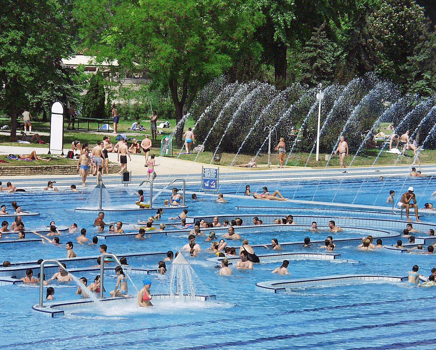 Budapest patinás, ősfás parkkal körülölelt strandja, amely három medencével rendelkezik: strandmedence (22-23 fokos, 1,5-2 méter mély); gyerekmedence (22 fokos, 0,25-0,6 méter mély); úszómedence (22 fokos, 1,2-2,4 méter mély).