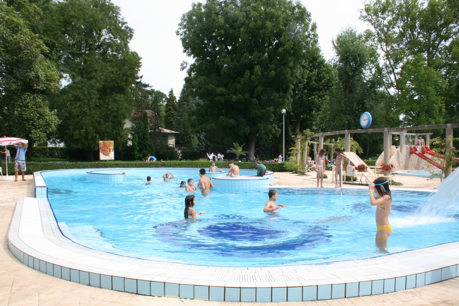 A rózsalugasok között lévő három medence valamennyi korosztály részére fürdési, strandolási és kellemes kikapcsolódási lehetőséget biztosít. Terebélyes fákkal borított zöld területe pihenést, felüdülést nyújt a családok számára.