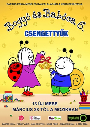 A Bogyó és Babóca 6. – Csengettyűk címmel március 28-án jelenik meg a mozikban. Az egyik legsikeresebb magyar gyerekfilm-sorozat hatodik része, a korábbi mozifilmekhez hasonlóan, elsősorban a 2-6 éves gyerekeket szólítja meg. Az idén 20 éves sorozatból készült mozifilm ezúttal is 13 részes meseválogatás, 13 új kaland a régi, jól ismert szereplőkkel, és néhány vadonatúj karakterrel.