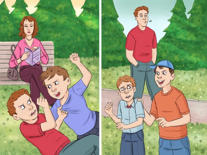 Tegyük fel, hogy észreveszed, hogy gyermeked gúnyol egy másik gyermeket. Mit csinálsz? Vannak, akik félrehúzzák fiukat/lányukat, és követelik, hogy bocsánatot kérjenek. Mások nevetnek, és/vagy hagyják, hogy a helyzet magától megoldódjon. A probléma ezzel az, hogy a gyerek azt hiszi, hogy a szülő felel az ilyen helyzetek megoldásáért, és továbbra is ugyanúgy fog viselkedni, mivel tetteinek nincs következménye. Ez azt eredményezheti, hogy tetteiért felelősséget nem vállaló felnőtt válik belőle, vagy egyszerűen engedelmeskedni fog másoknak attól függetlenül, hogy azok cselekedetei helyesek-e vagy sem.