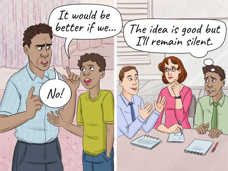 Egyes szülők minden vitát vagy követelést azzal fejeznek be, hogy „mert én azt mondtam”. Nem ismerik el gyermekük véleményét olyan dolgokban sem, amelyek őket érintik. Fontos megértenünk, hogy ha a gyerekek hangot adnak véleményüknek, az az egyik módja annak, hogy megtanuljanak felelősséget vállalni saját döntéseikért. Ennek a figyelmen kívül hagyása olyan felnőttet eredményezhet, aki tartózkodik majd a megnyilvánulásoktól, vagy úgy érzi, nincs semmihez hozzáfűznivalója.