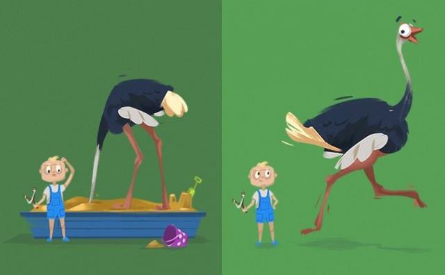 TÉVHIT: A strucc ijedtében a homokba dugja a fejét.
