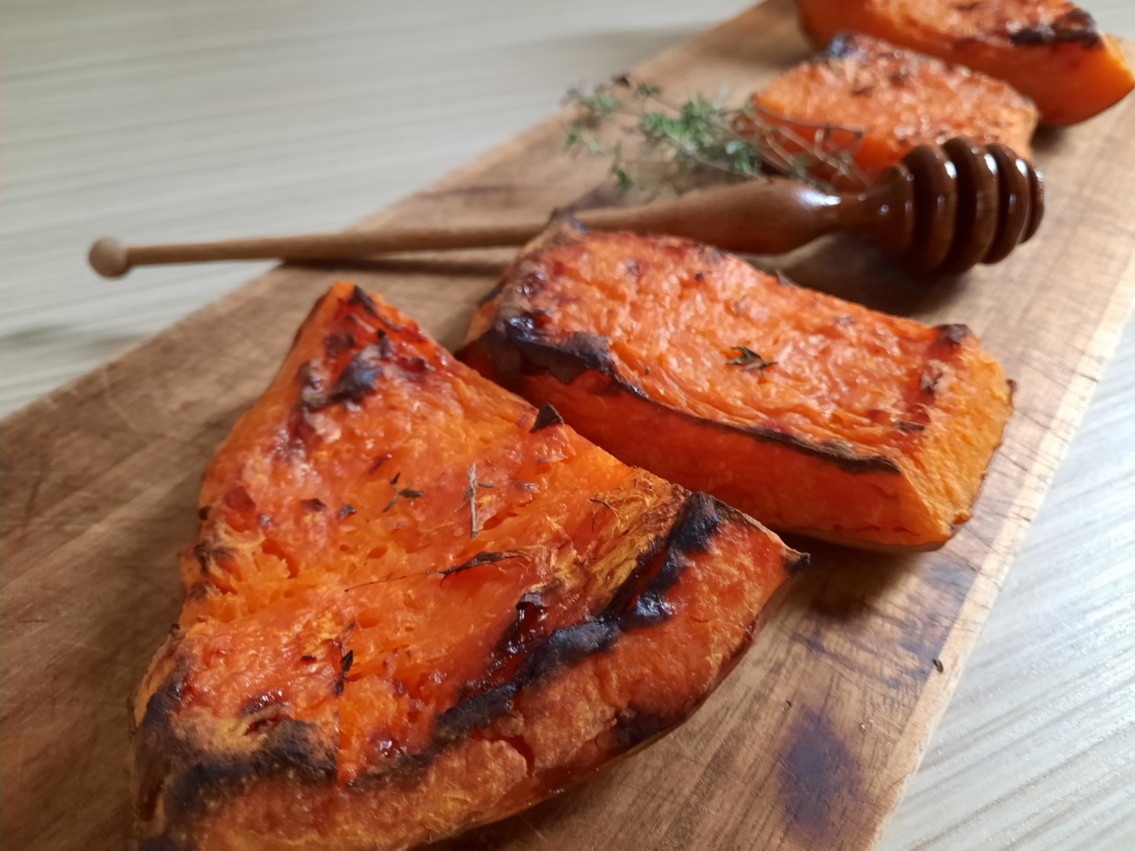 Sült sütőtök mézzel locsolva, kakukkfűvel megsszórva