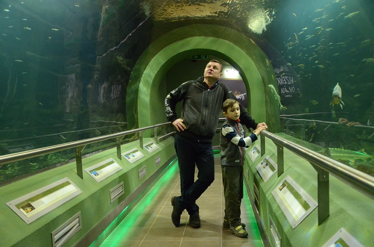 Az Ökocentrum kikötője közvetlen összeköttetést teremt a Tisza-tóval, kiinduló pontja a GPS navigációval támogatott vízi túráknak és kishajós kirándulásoknak. Fenti fotó az ökocentrum óriásakváriumát mutatja.