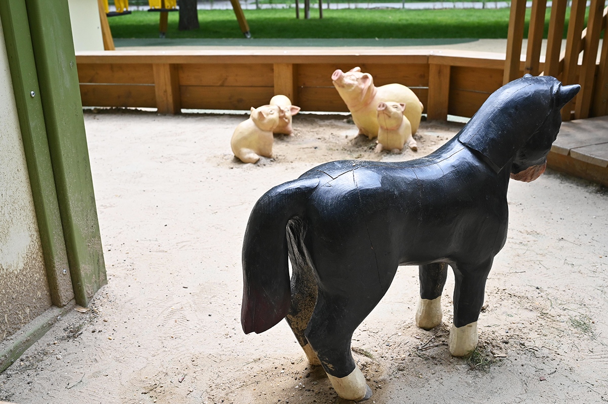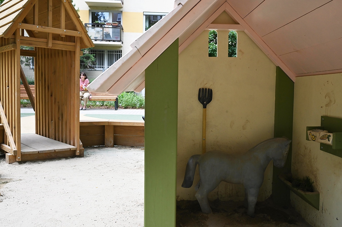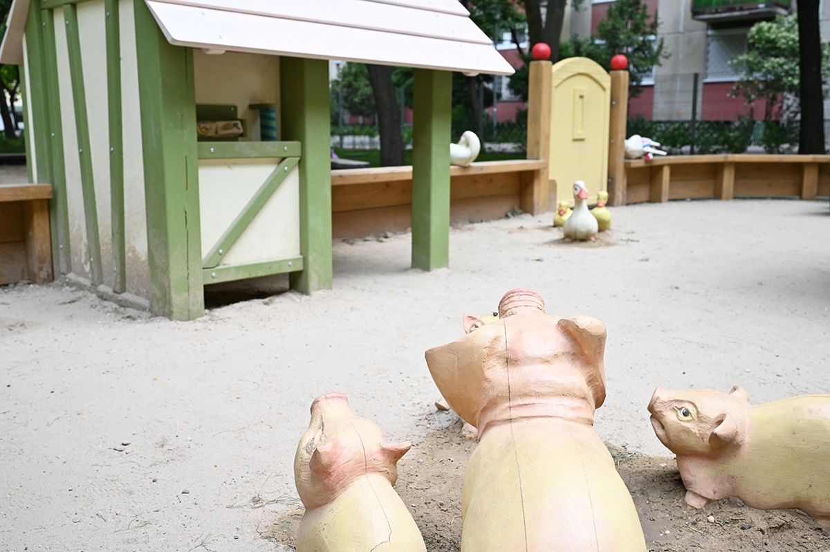 A déli játszórészt elsődlegesen a kisebb gyerekeknek alakították ki. A kicsik területén mini mérleghinta és egy szerepjátékra alkalmas „majorság” várja a kis gazdálkodókat.