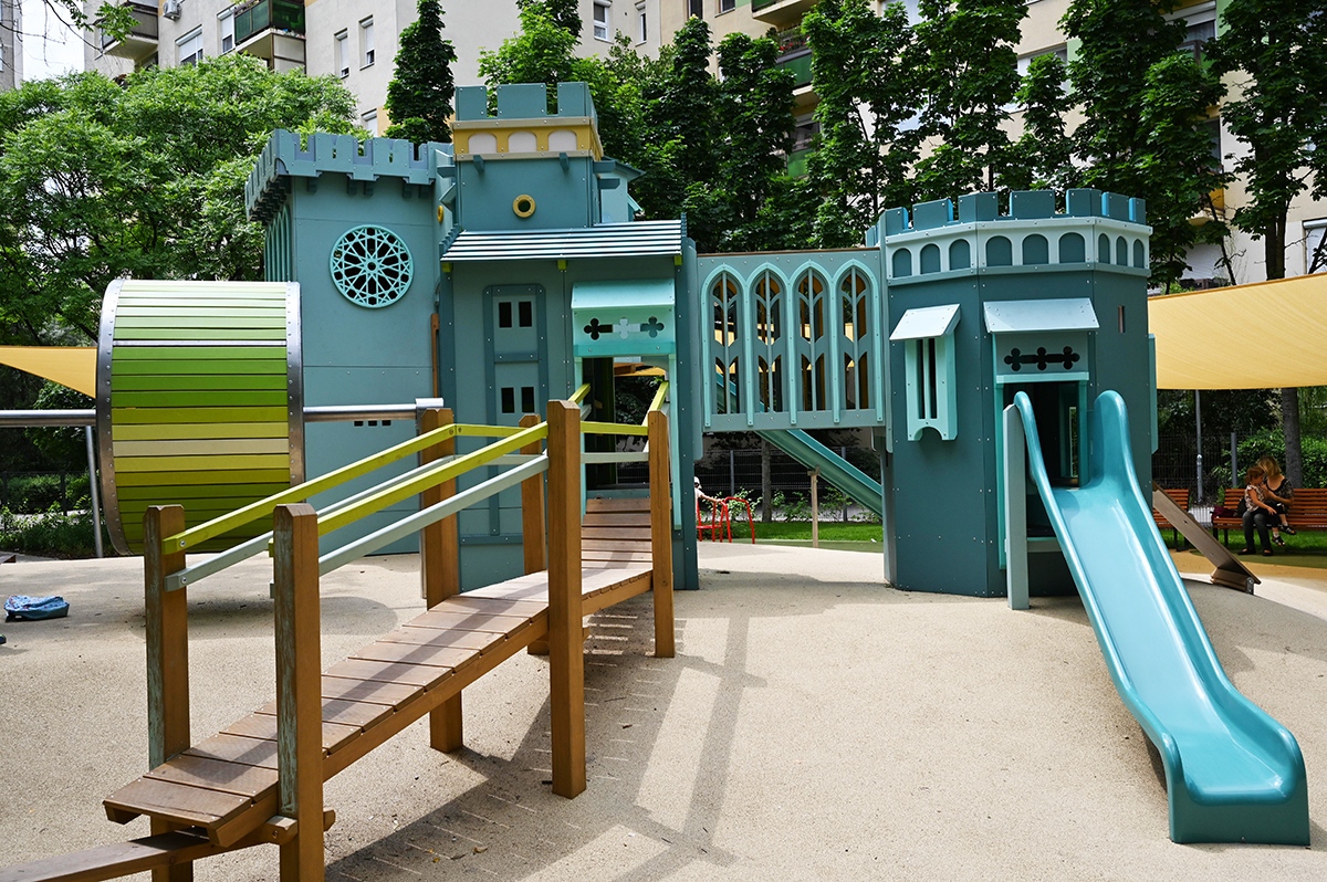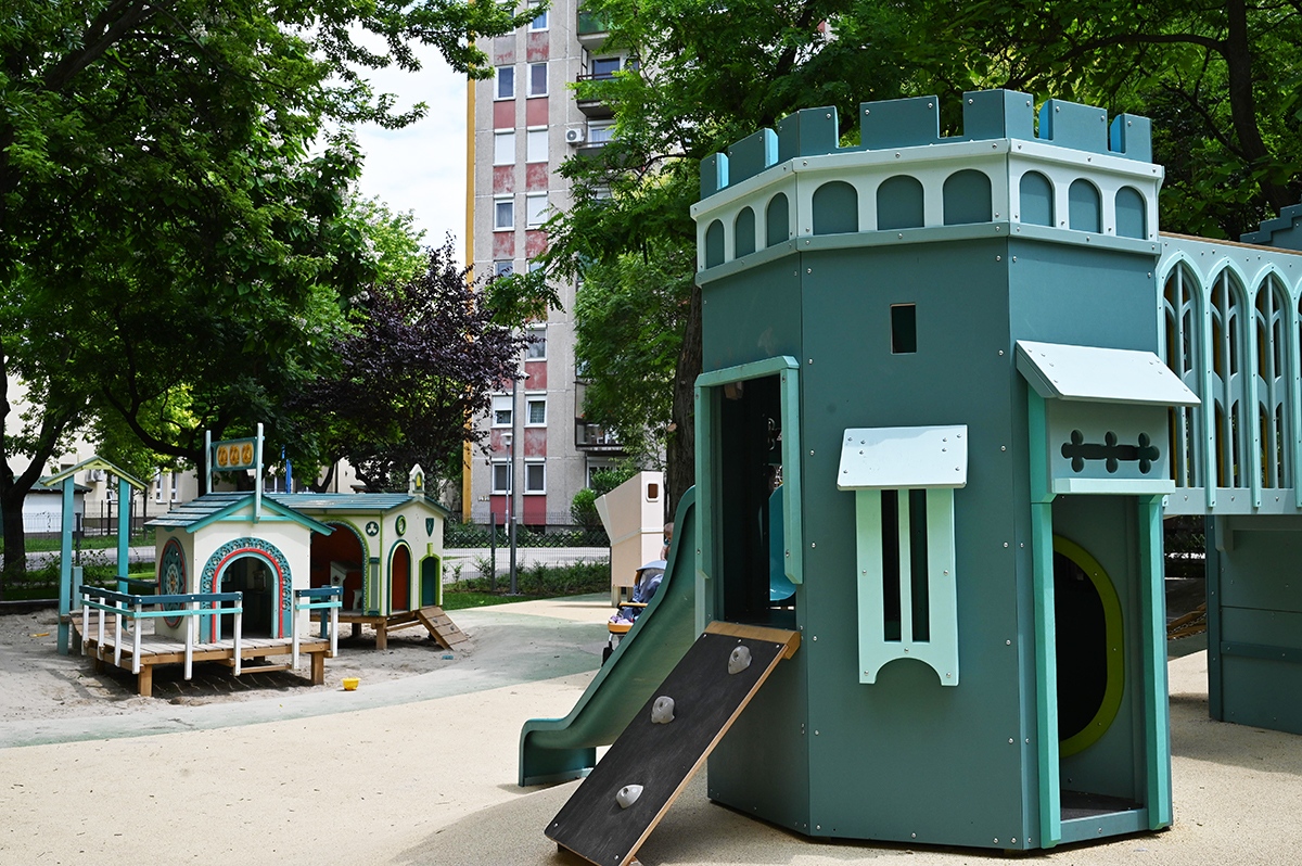 Korszerű és interaktív játszóeszközökkel, kismotor-pályával, középkori várral, mini majorsággal újult meg a 13. kerületi Országbíró lakótelephez közel eső, biztonságos, gumiburkolattal fedett, árnyas fákkal körülölelt Szováta játszótér.